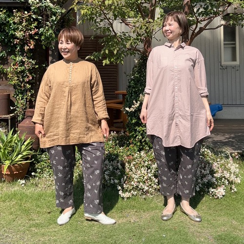 麻調のポプリン生地にオリーブ刺繍を施した高級感ある総刺繍istaパンツ