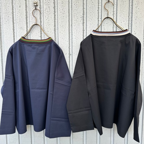 肌あたりが心地よいストレッチブロード(爽爽)を使用したロンTのように着れちゃうライン入りのリブプルオーバー