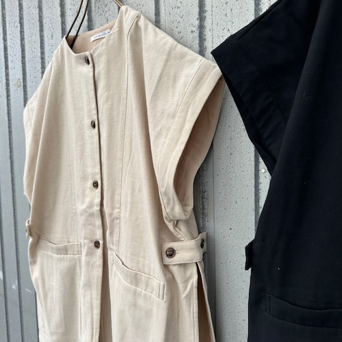 しっかり平織とくたっと綾織の2枚仕立てのロング丈のジレ