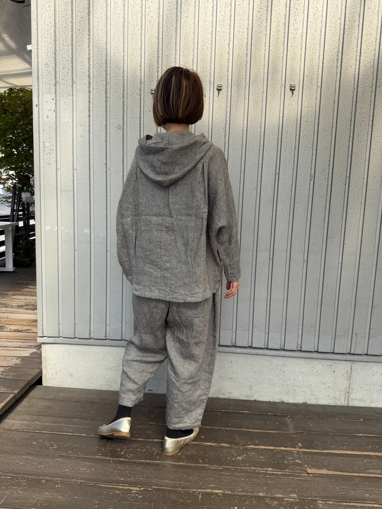 ネップ感ある起毛のリネンを使用したフード付きバルーンジャケット