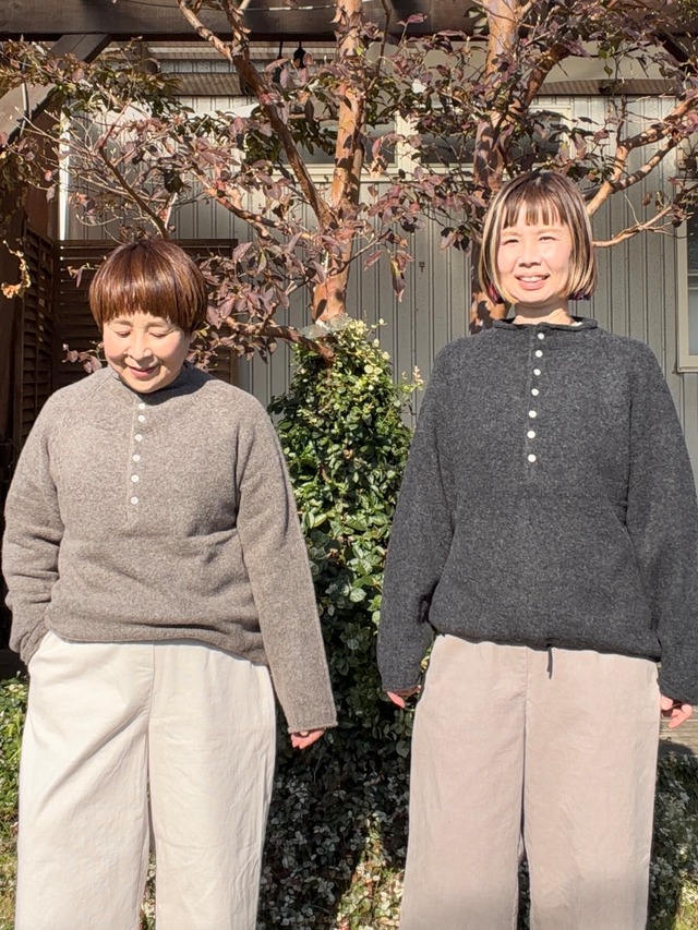 めっちゃ細い、柔らかな肌触りのアンゴラうさぎの産毛をブレンドした糸を使用したふりふりフリルクルーネックカーディガンです。今シーズンは、ふっくらとしたボリュームがありながら軽い素材に、グレンチェックの切りっぱなしのフリルにアップデート!これまた、オトナカワイイ1枚です。大人っぽいけれどほんのり甘い!気持ち華やぐカーディガンが出来上がりましたよ。