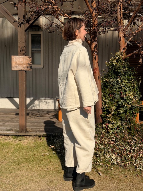 NARUオリジナルのmade in JAPAN裏起毛デニムです。デニムの産地広島県福山でおり上げて、起毛加工の産地大阪府泉大津で加工しました。デニムは分厚いほど硬くなってしまう中、しっかりとした肉感がありつつも柔らかな風合いを追求しました。