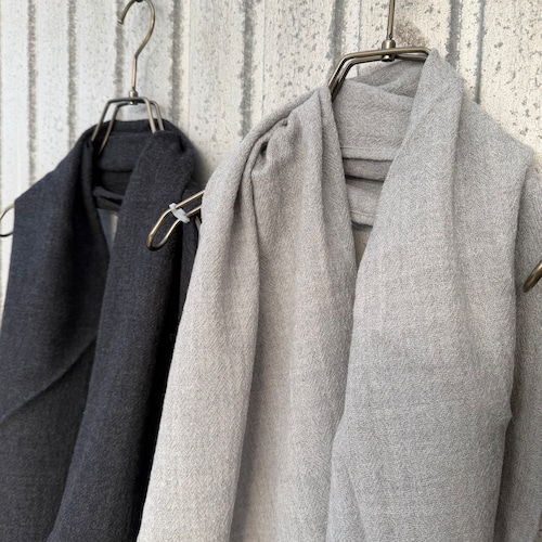 首に巻くのはもちろん、肩から掛けてショールの様に使うのもおすすめです。