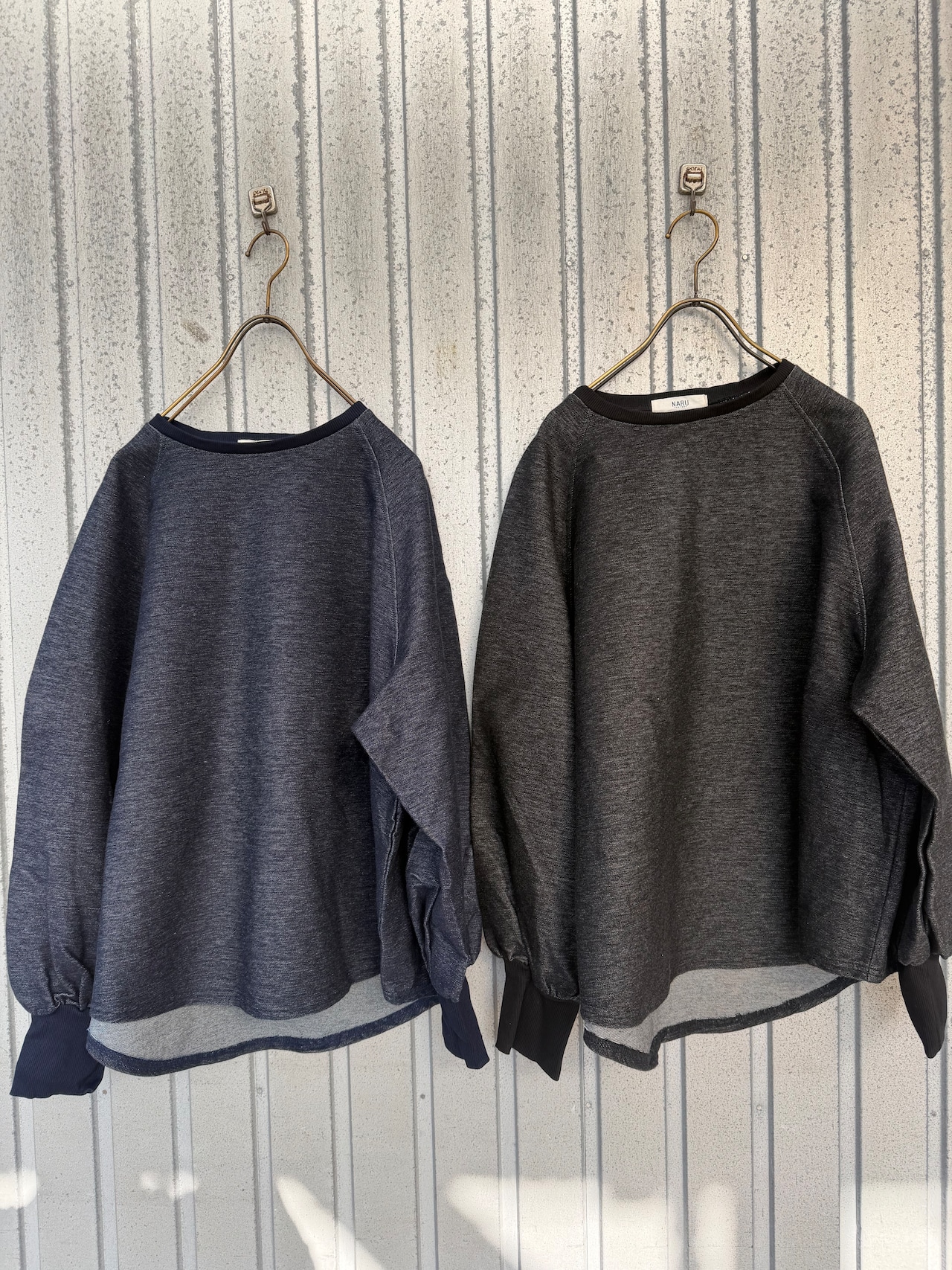 一見デニムに見えますが、伸縮性のあるデニムニット素材のPO