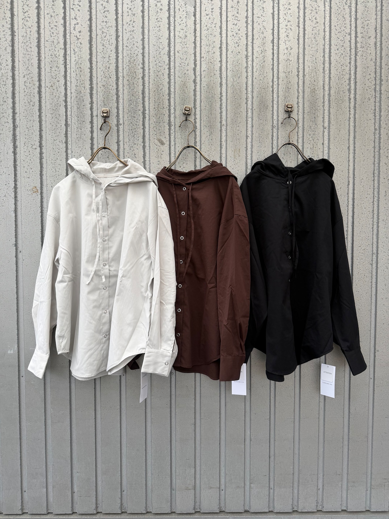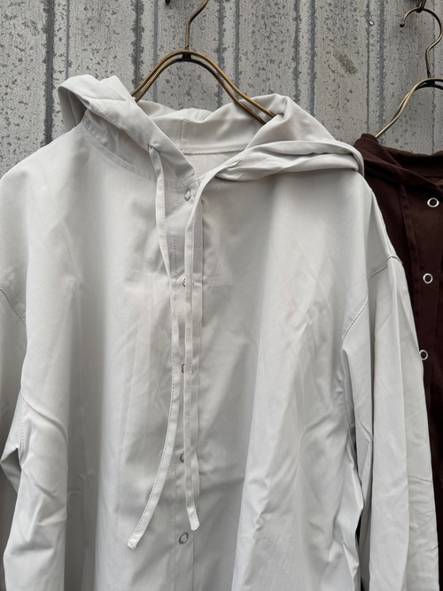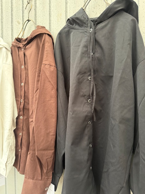 シャツの軽やかさとフードのカジュアルさがミックスされ、羽織りとしても一枚着としても活躍します!