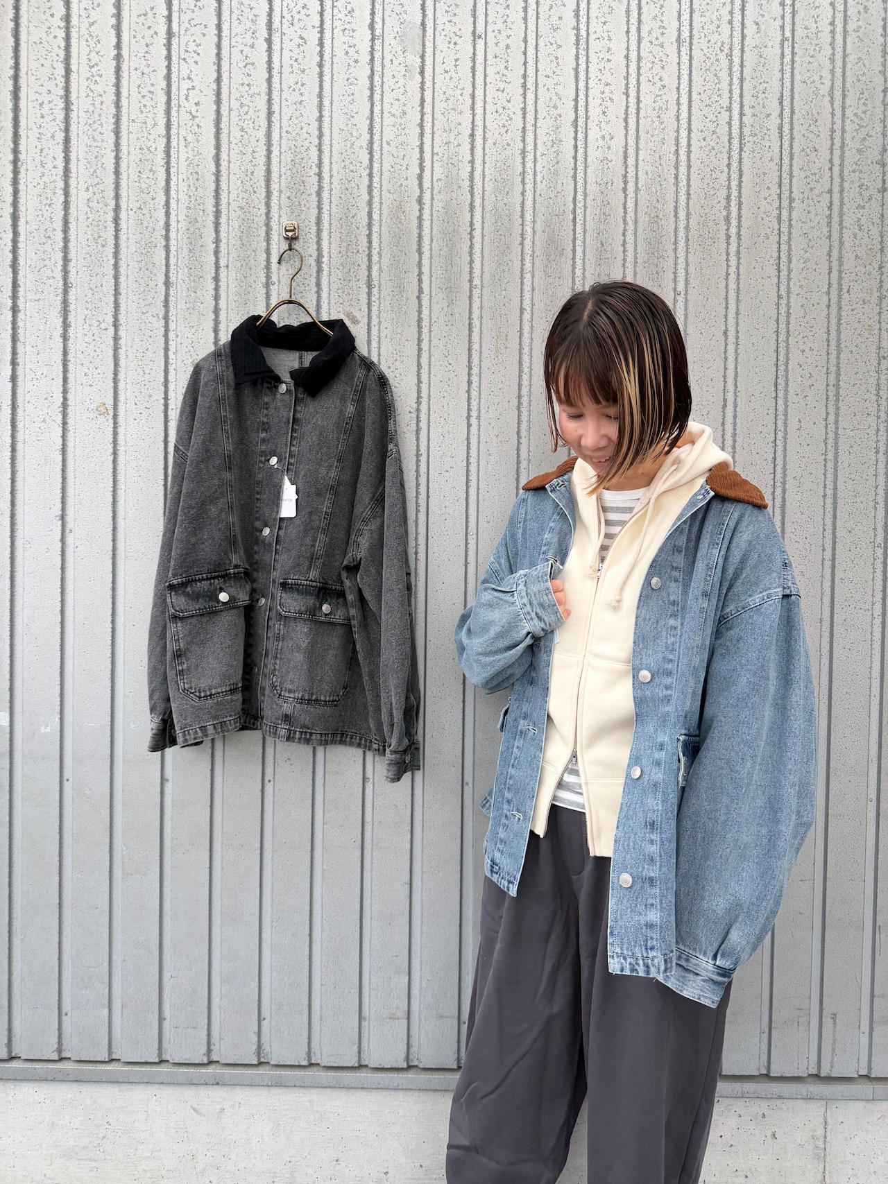 10ozデニム 衿コーデュロイ カバーオール ジャケット Gジャン/ ELENCARE DUE25AW/247386-3