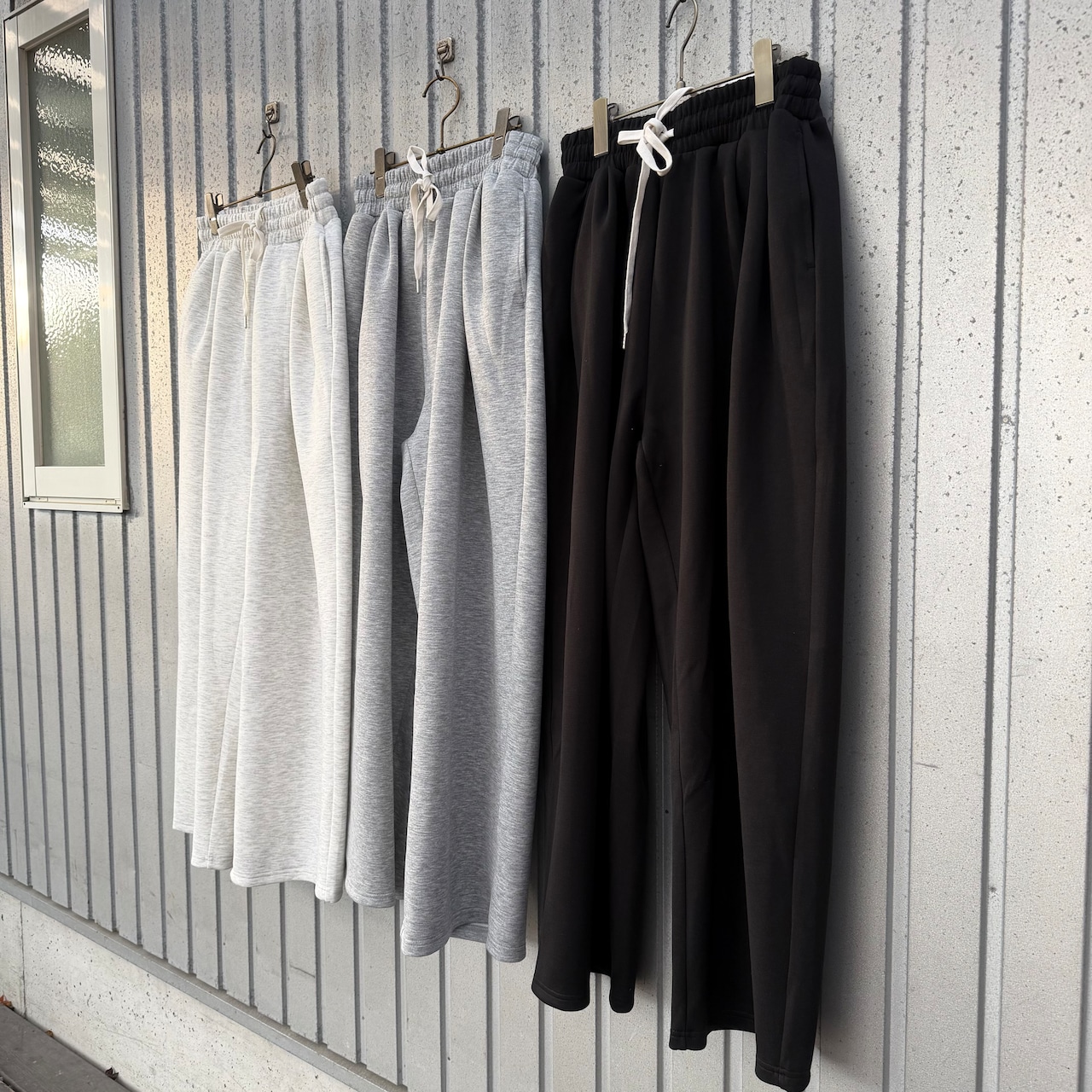 オートミールや杢グレーは柔らかく軽い印象に、ブラックは引き締まって大人っぽい雰囲気になります