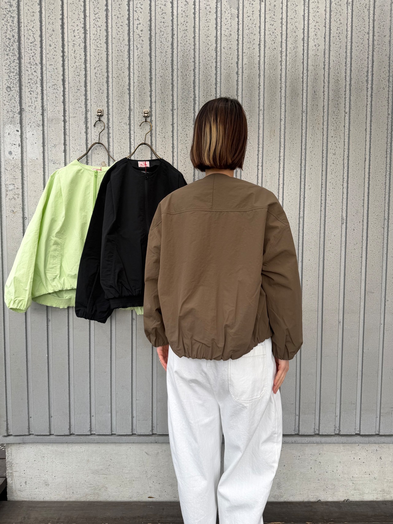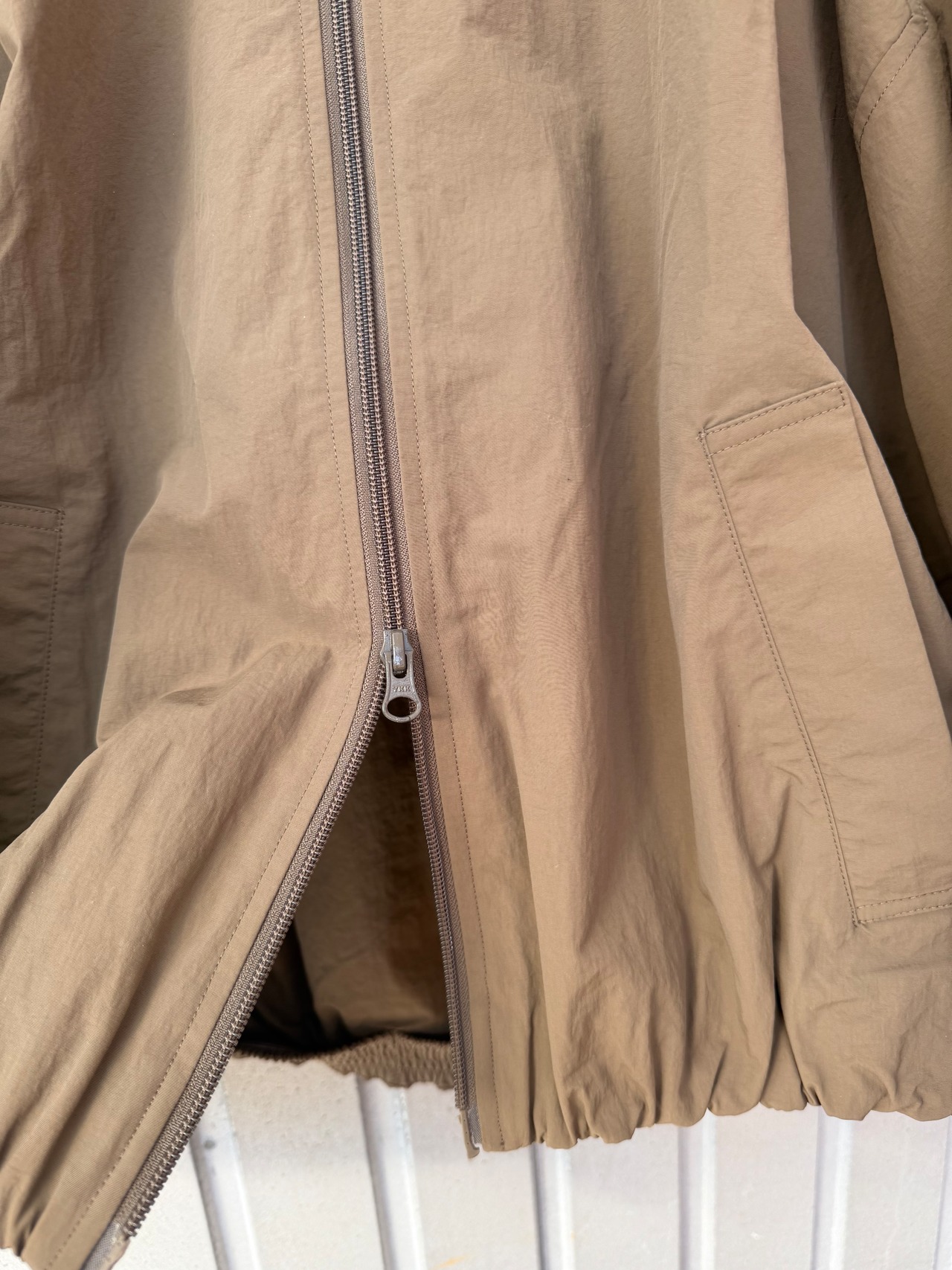ナイロンを高密度に織った、洗い晒したようなシボ感が特徴のウェザークロスをしようしたバルーンシルエットZIP UPジャケット