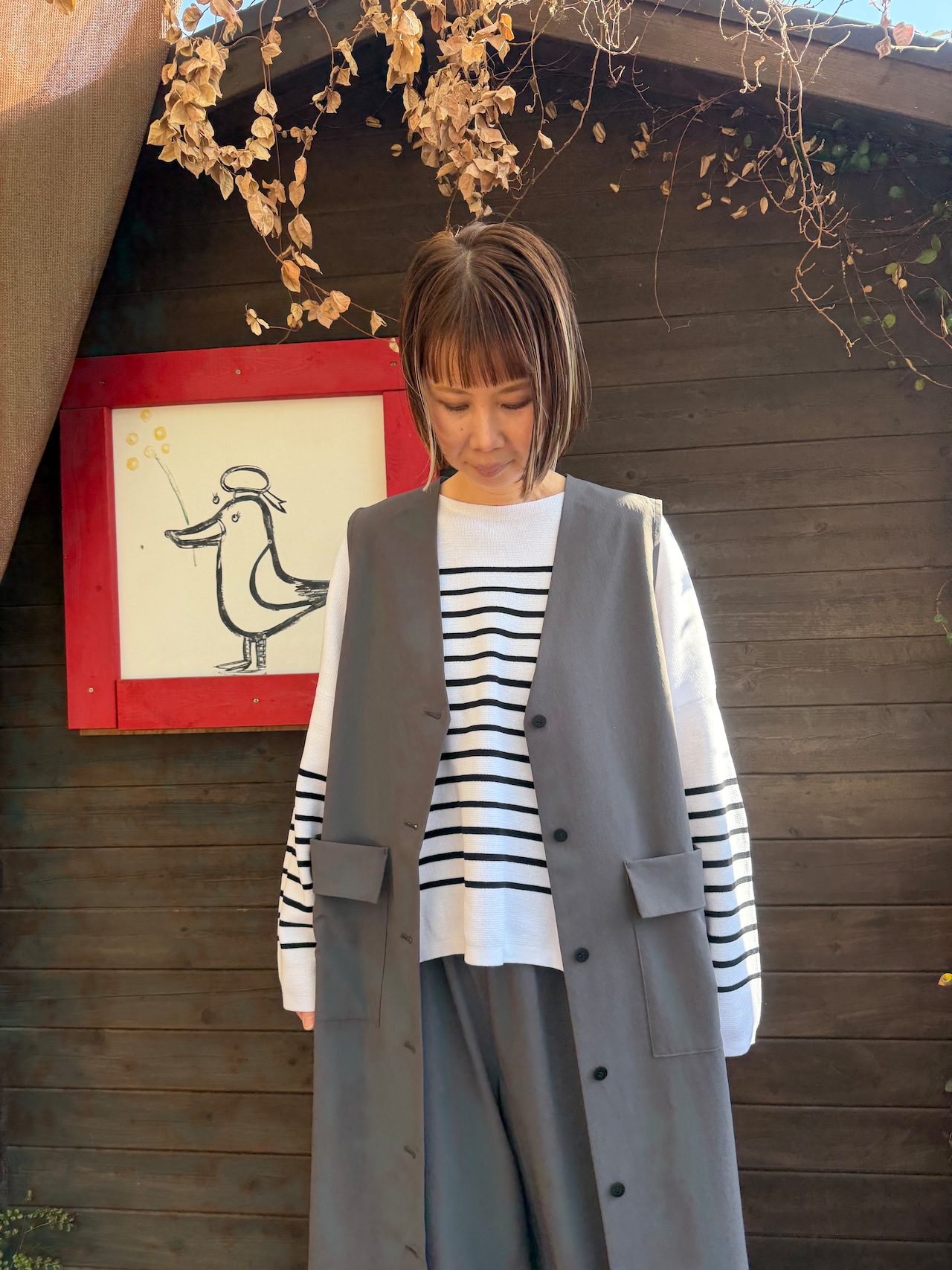 春はカットソーの上からロングベストとして、夏にはノースリーブワンピースとして、晩夏初秋にはTシャツの上からハオリとして、きちんとこなれ感が出せます。
