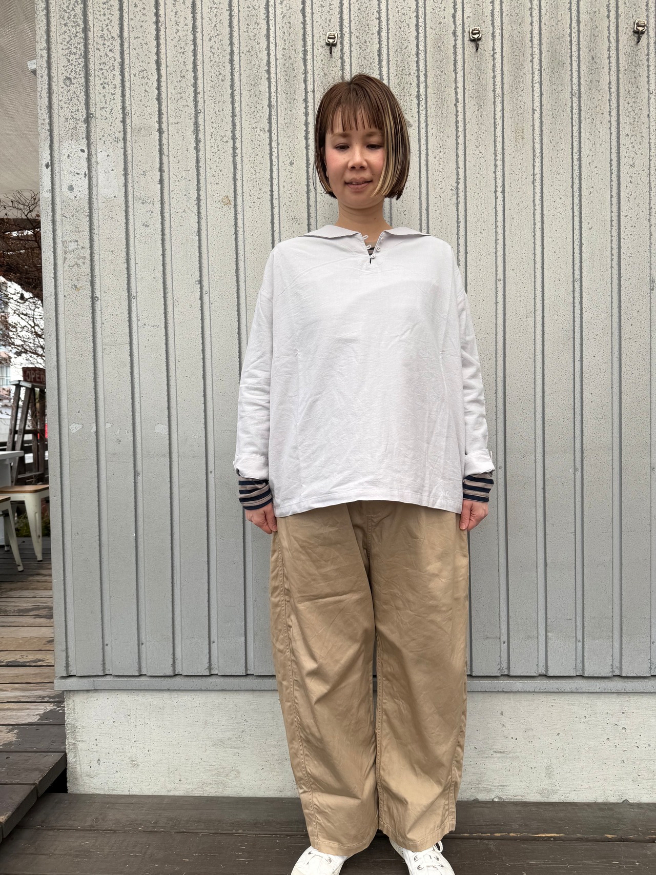 程よいゆったりシルエットで、ワイドパンツやスカート合わせにも