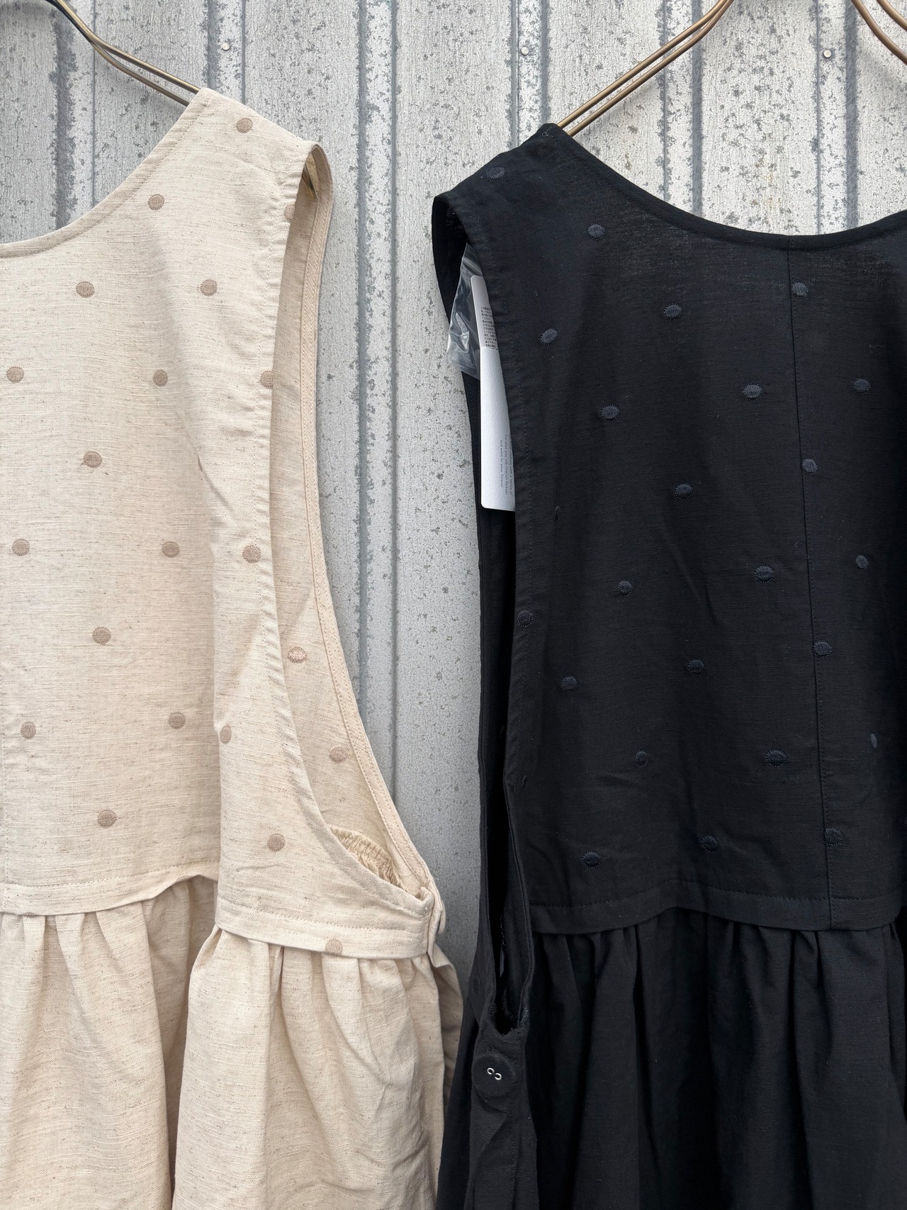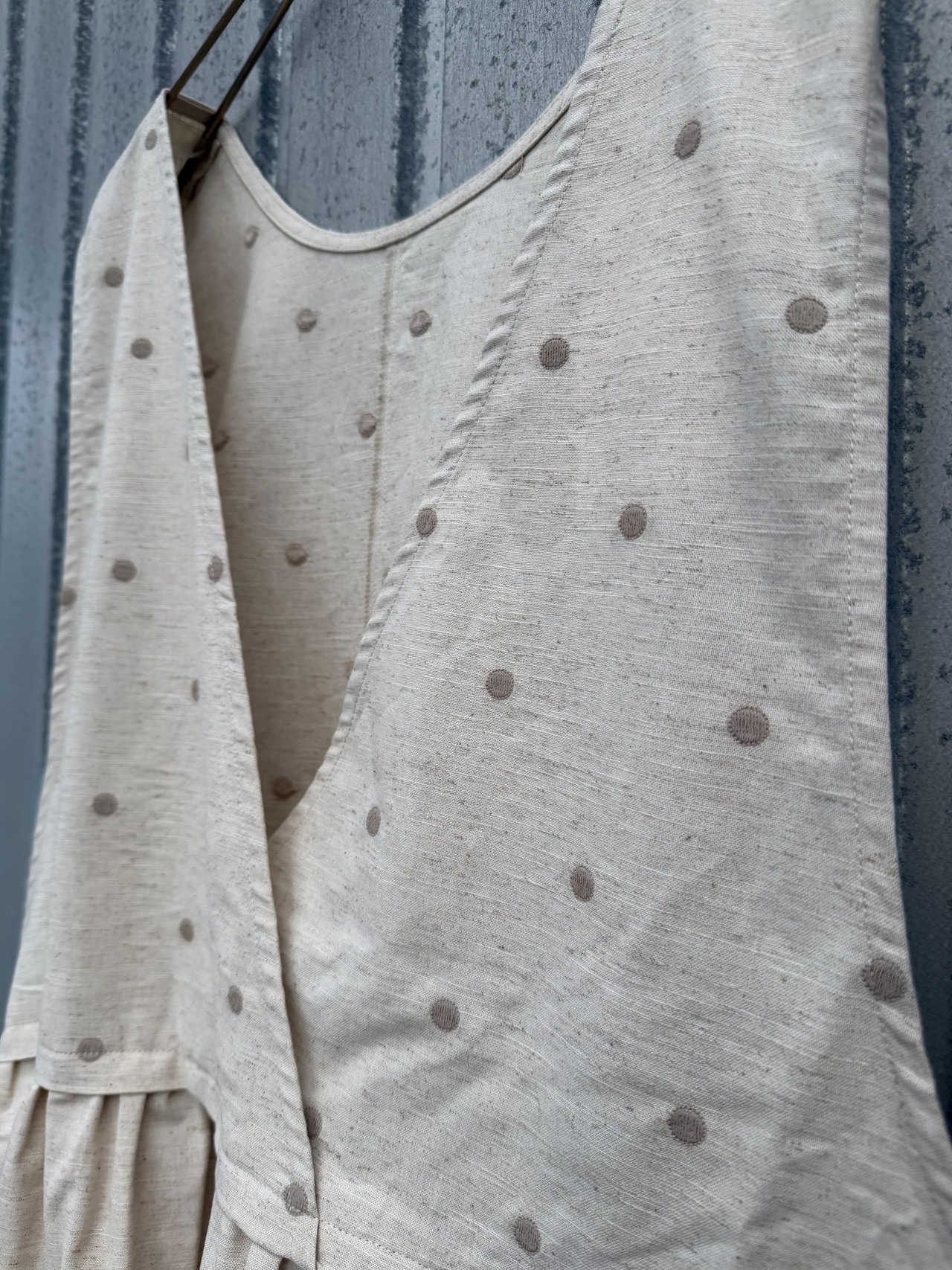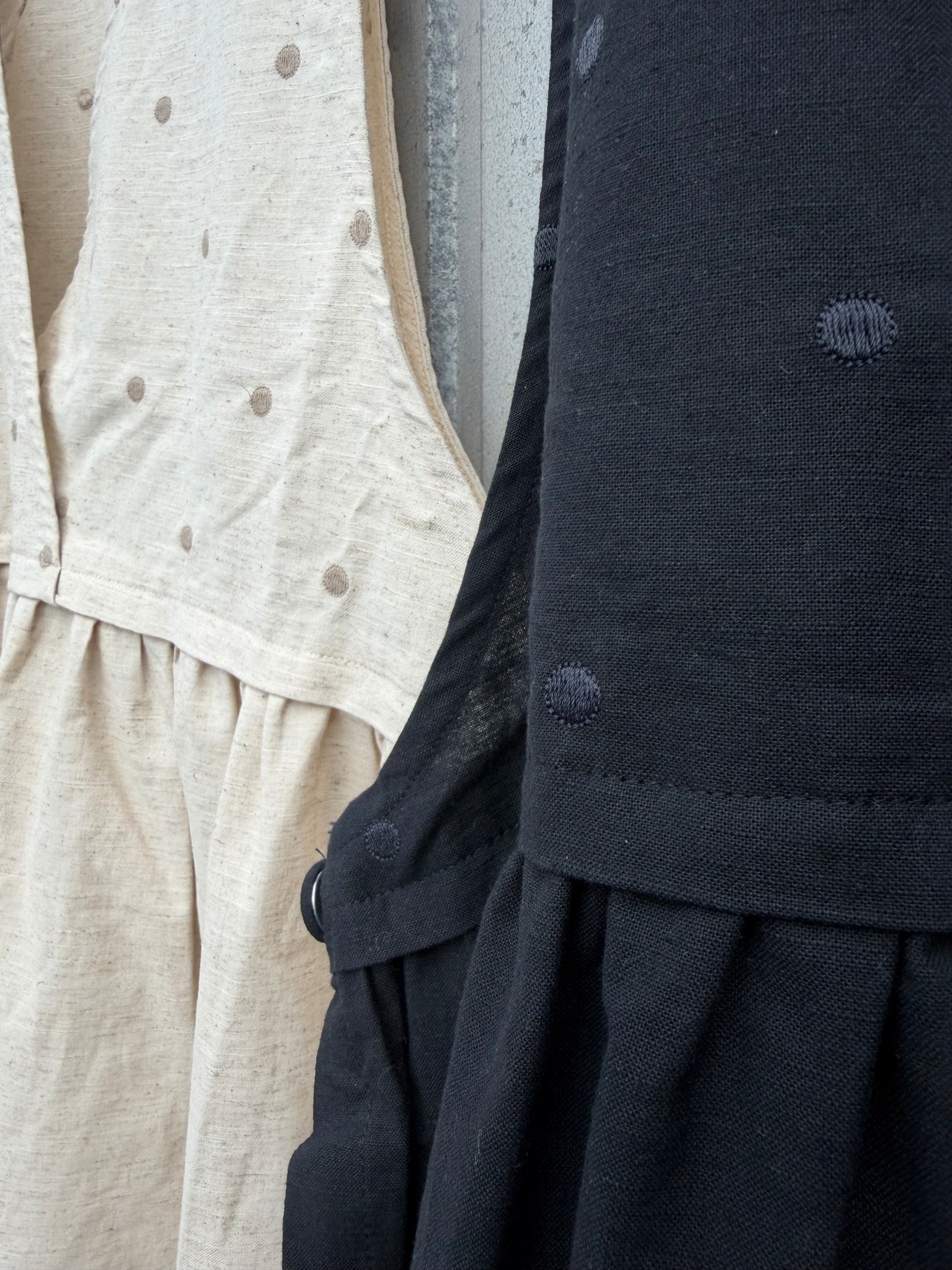 程よい肉感で軽さがあるさらっとした綿麻素材に、ドットの刺繍が入った甘すぎない水玉