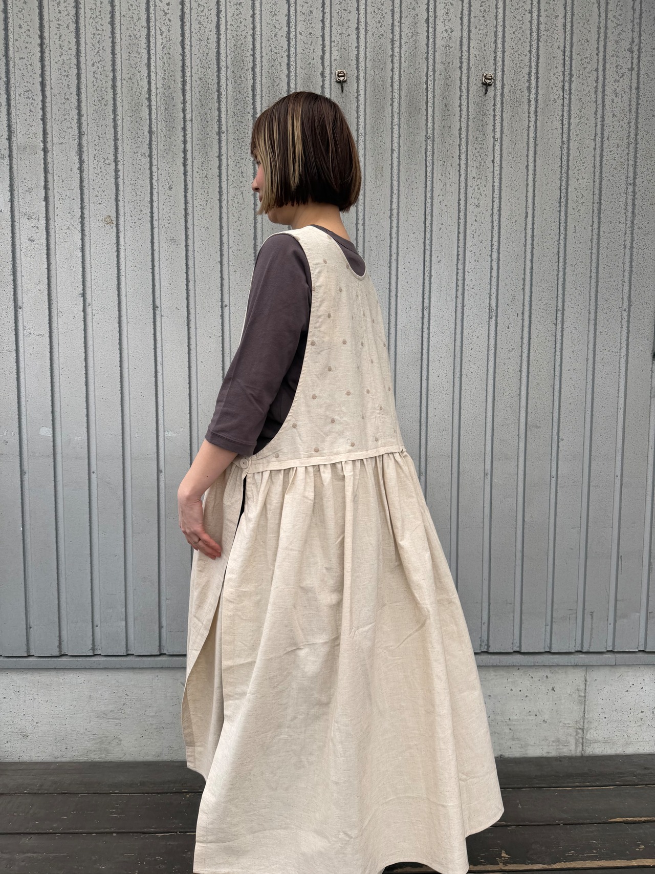 〈ドット刺繍/綿麻スラブ〉サイドOPENワンピース/ista-ire’26SS/2600-6170