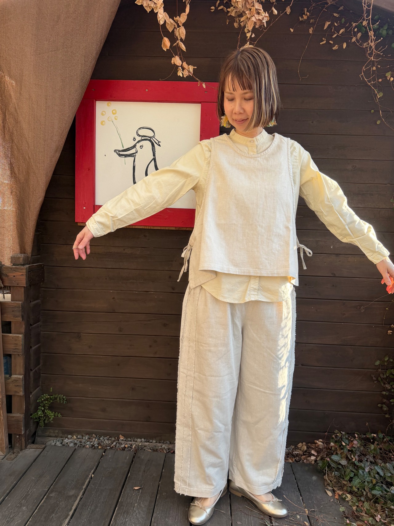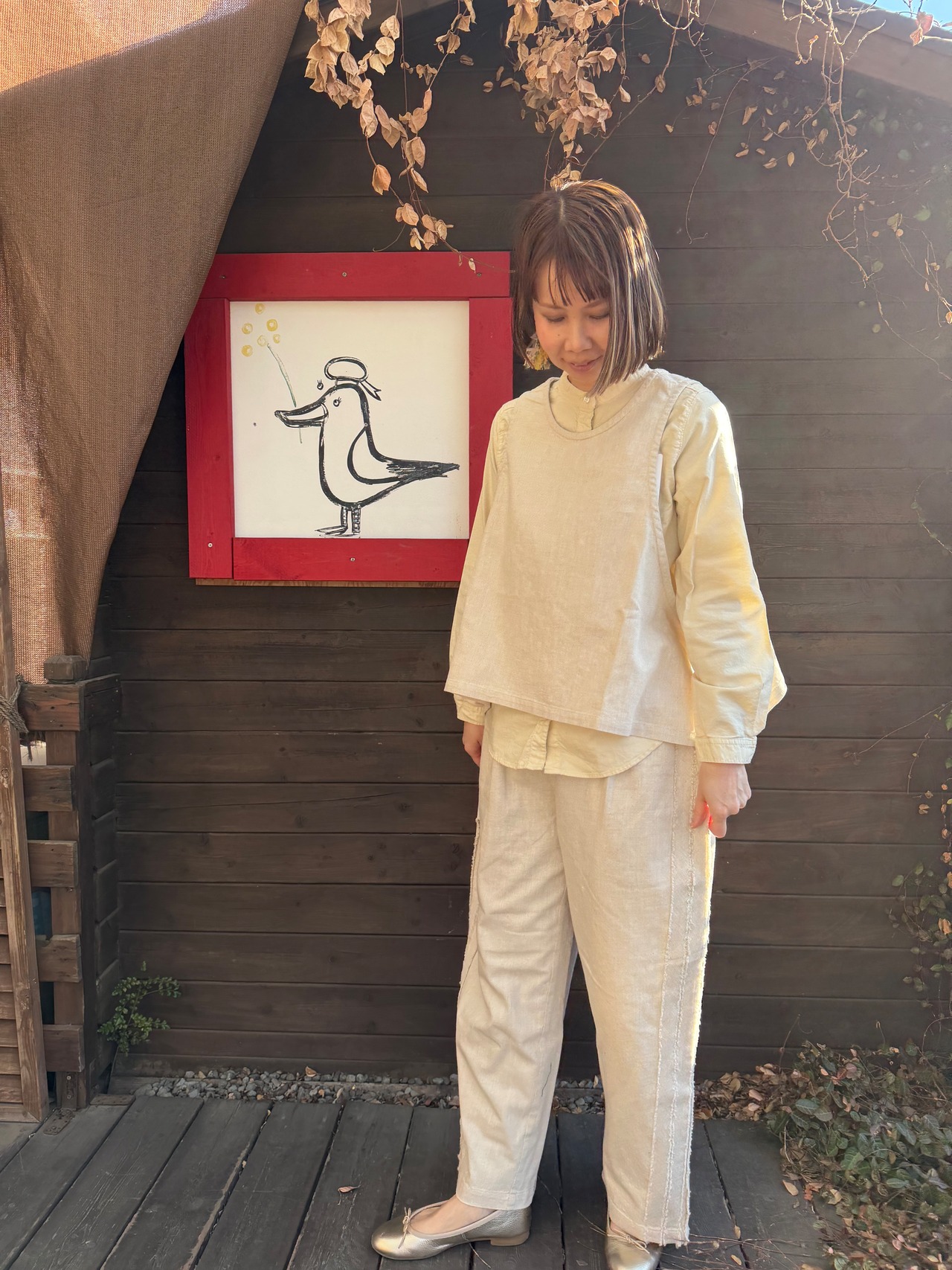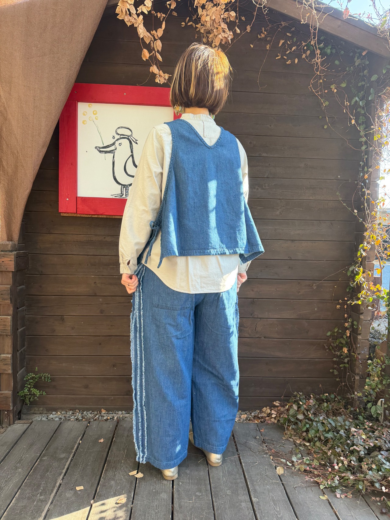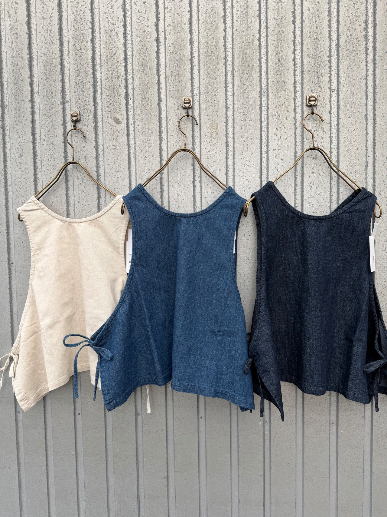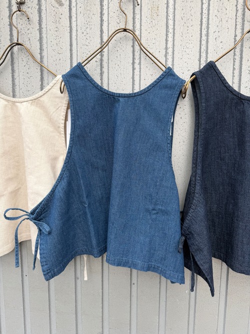 〈6.5oz綿麻甘撚りデニム 〉サイドリボン2WAYベスト/ista-ire’26SS/3600-6000