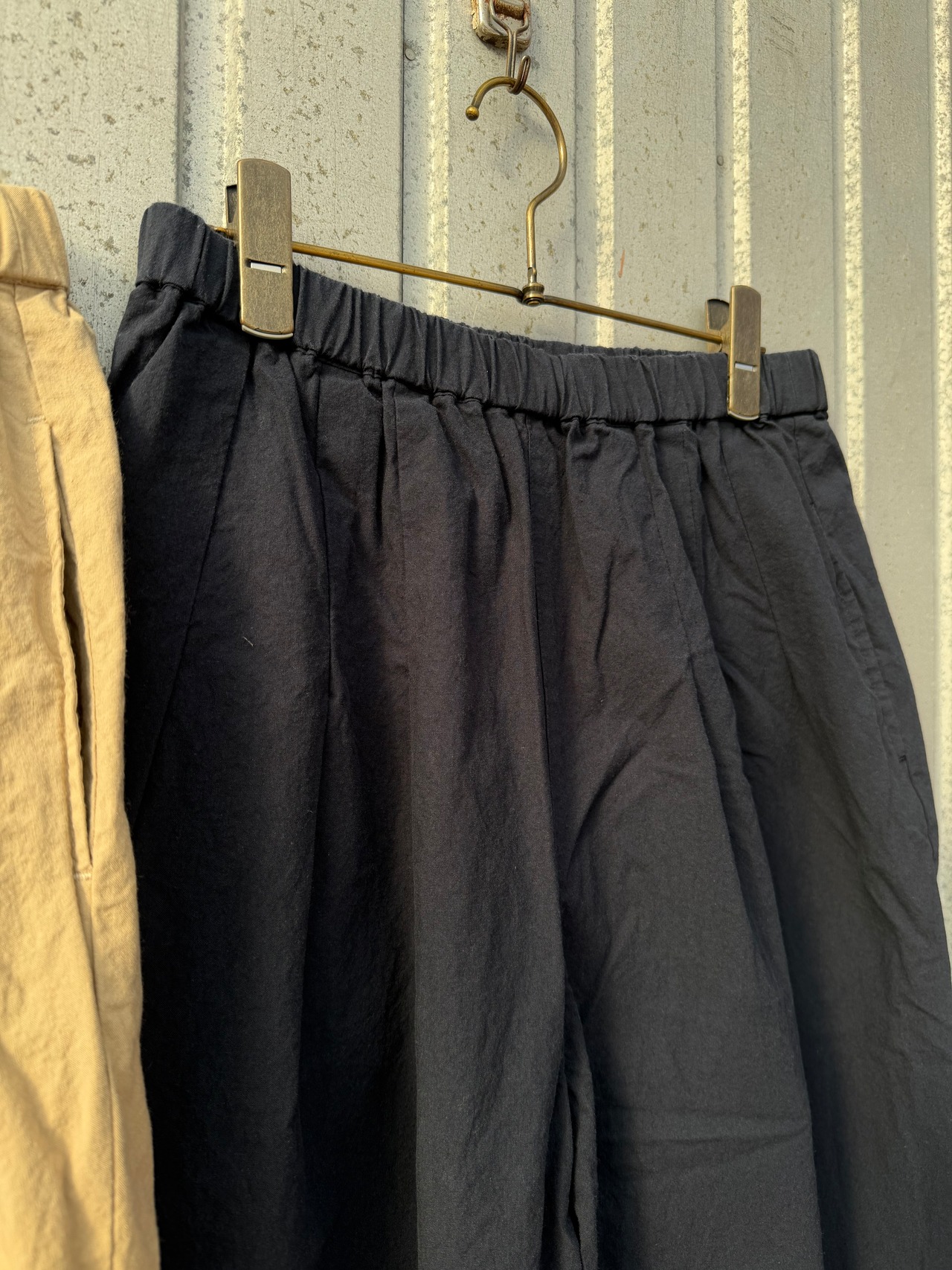 製品洗いの洗いざらしの自然な風合いのパンツ