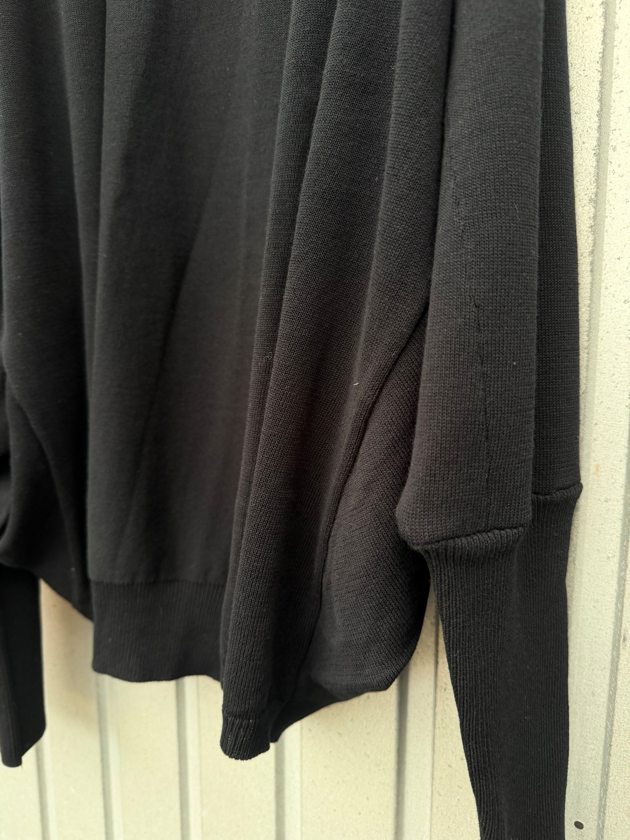 ゆったりな身幅、ほどよい裾幅、すっきりしたリブ編みの袖
