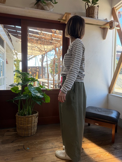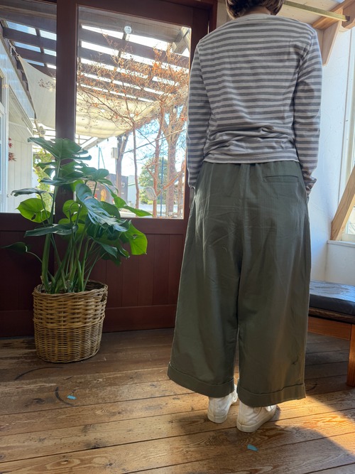 ワイドシルエットで裾はクロップド丈