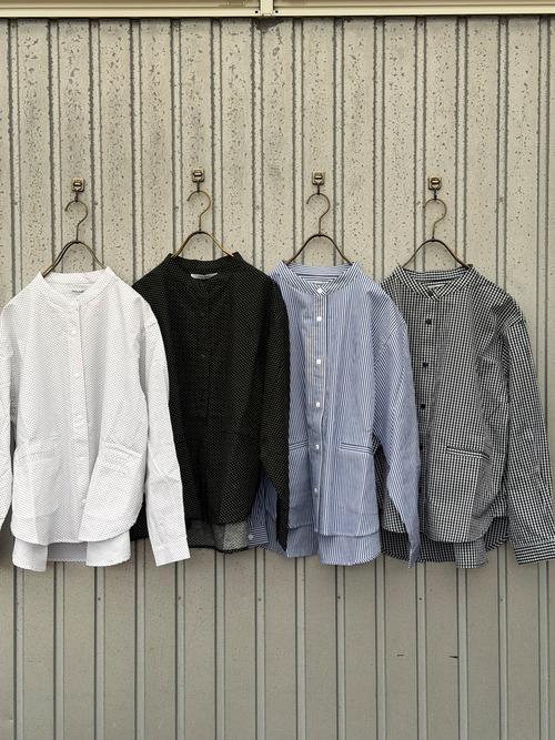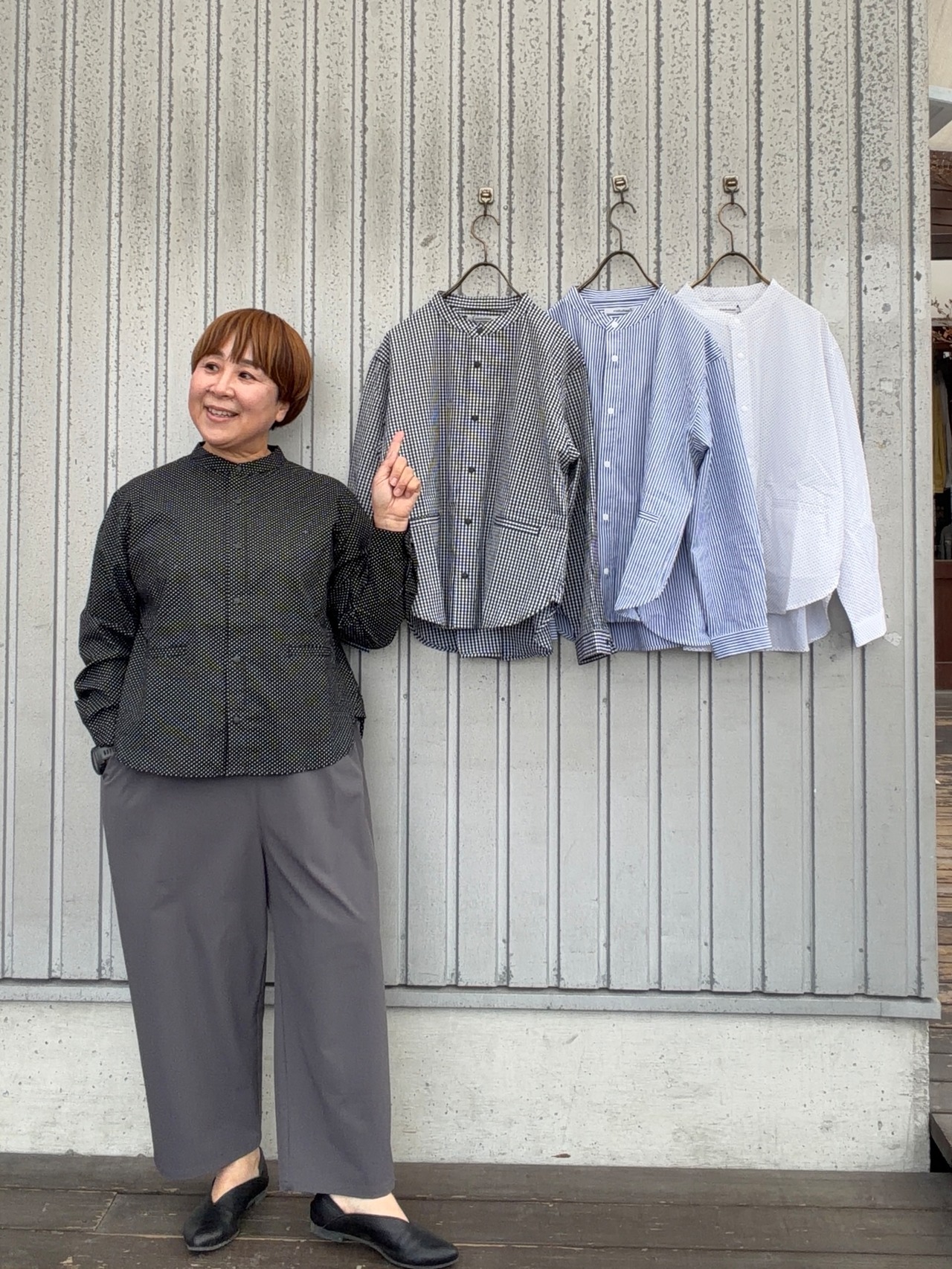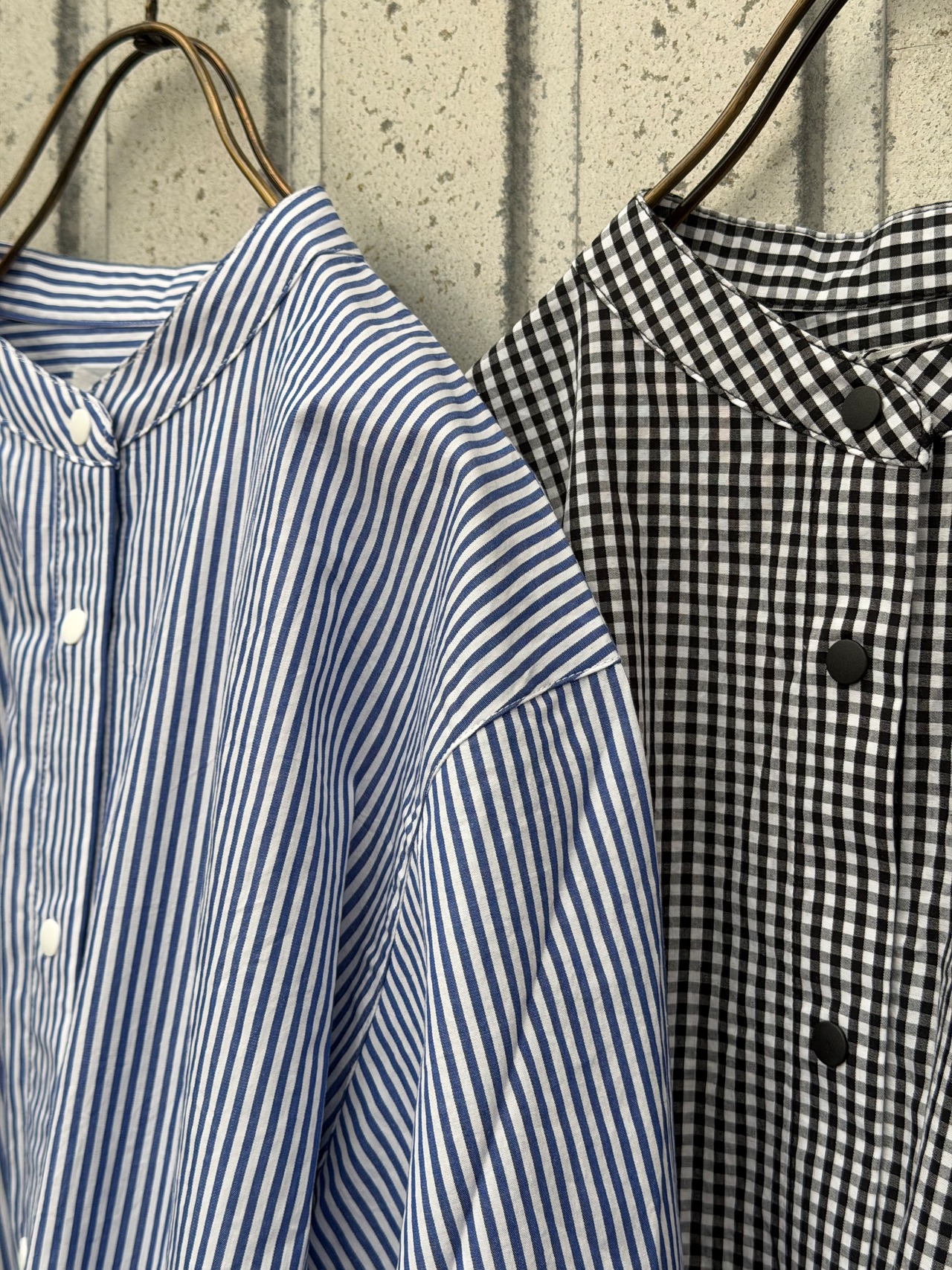 ドット・ストライプ・ギンガムのバンドカラーシャツ/nachukara’26SS/nk160541
