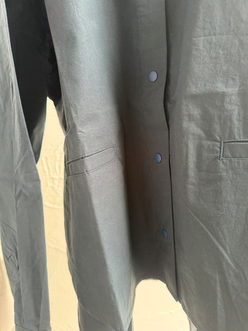 首元はしっかりバンドカラー、裾はラウンドでガゼット付きで細部にもこだわりが