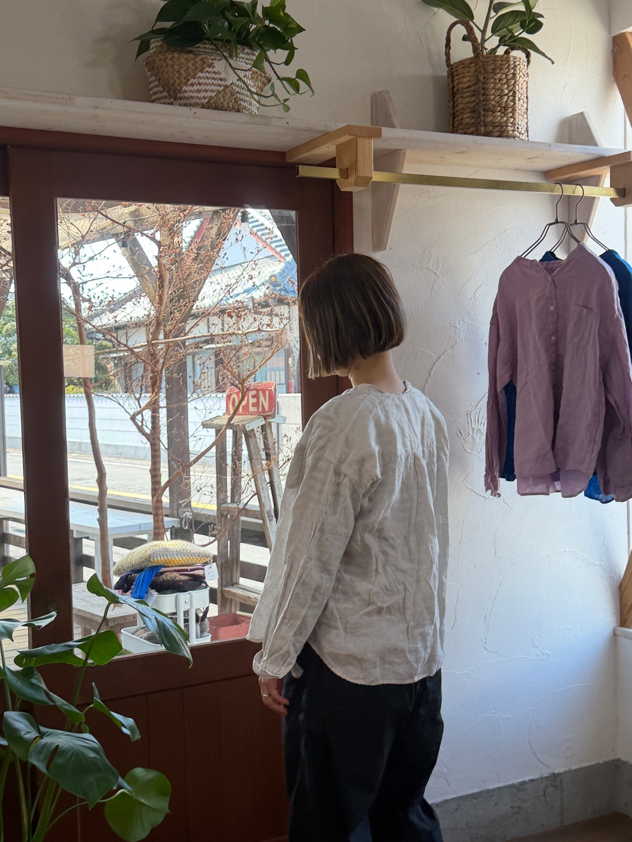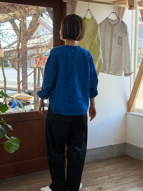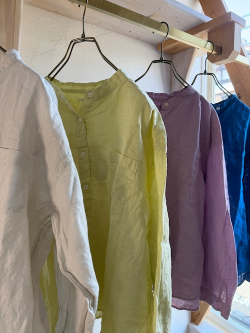 リネン100%日本製品染めのスタンドカラーシャツ