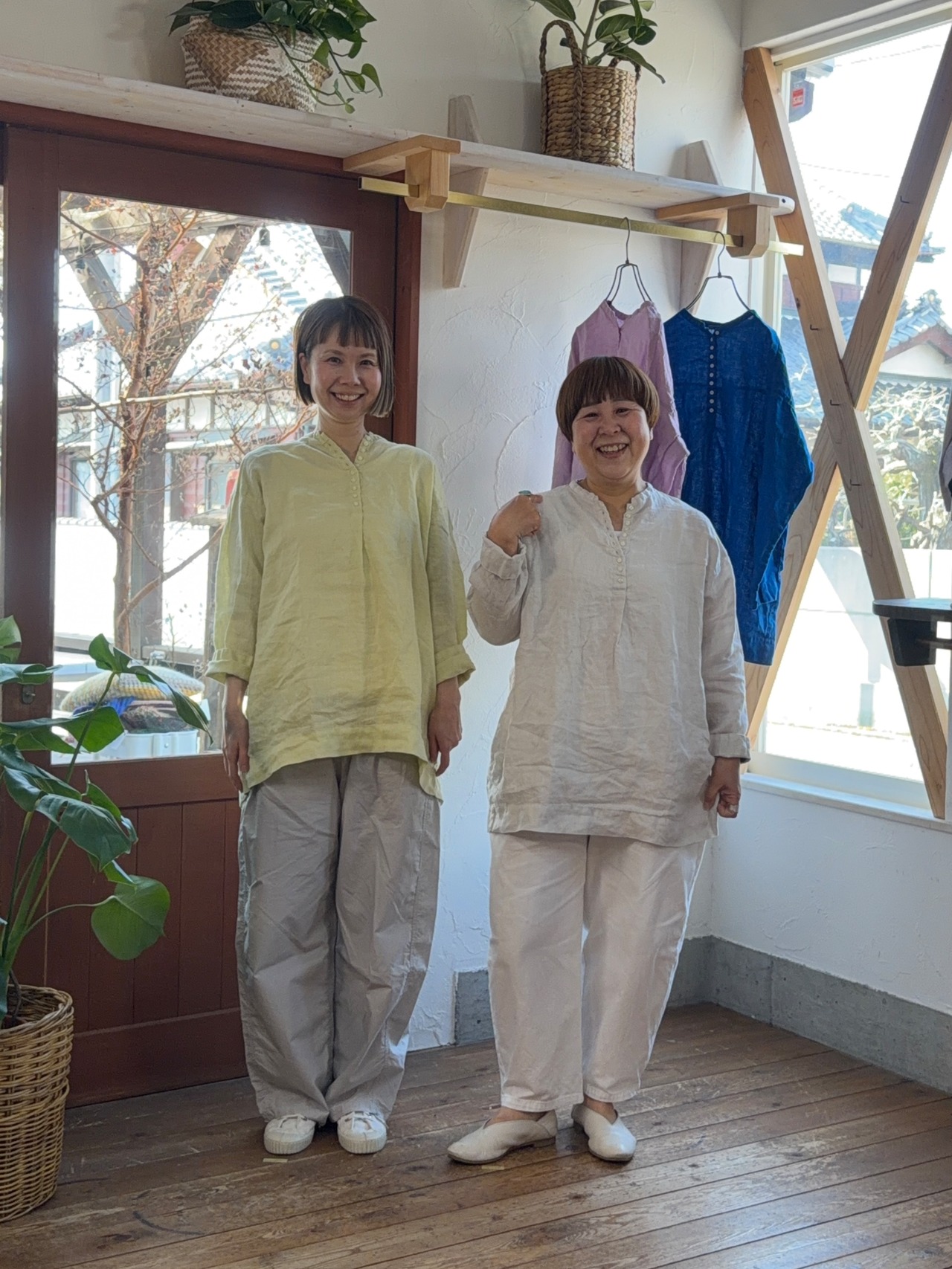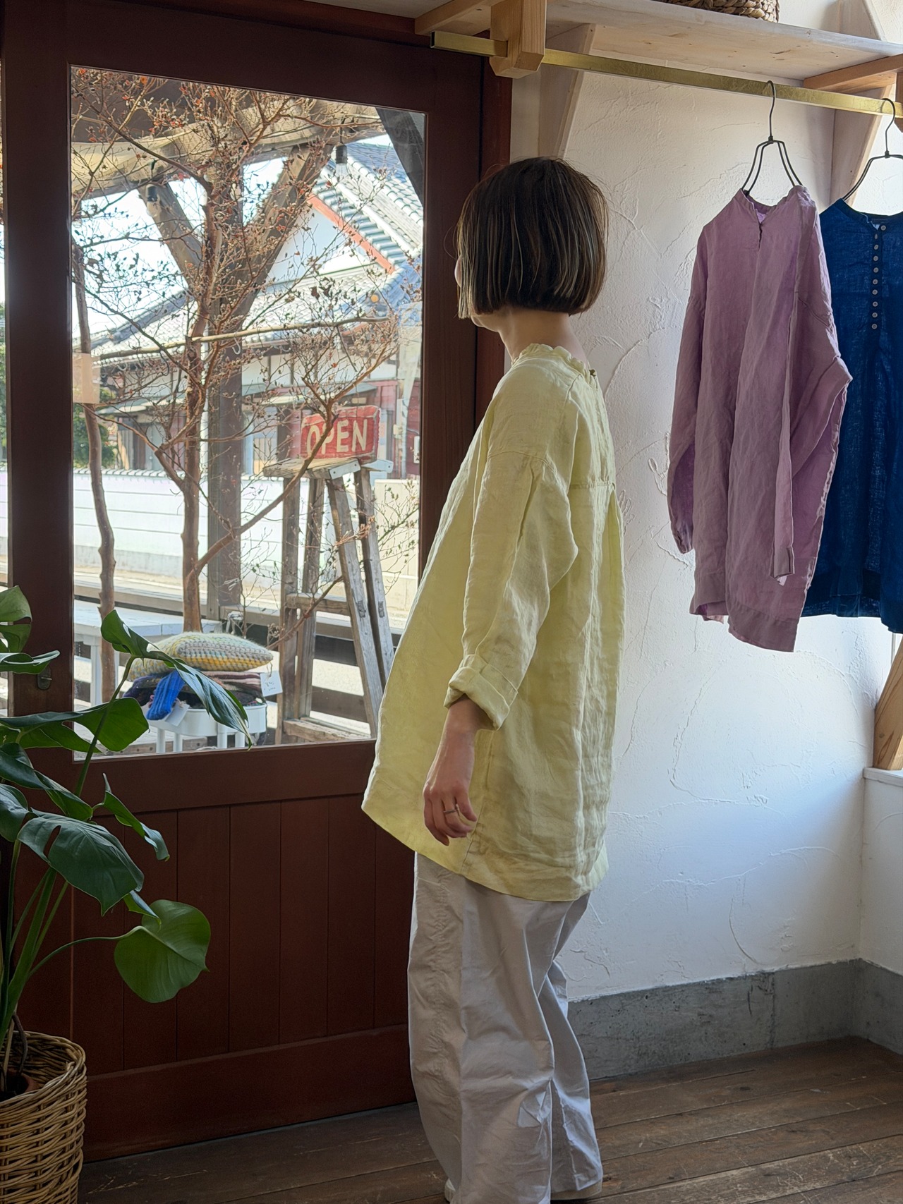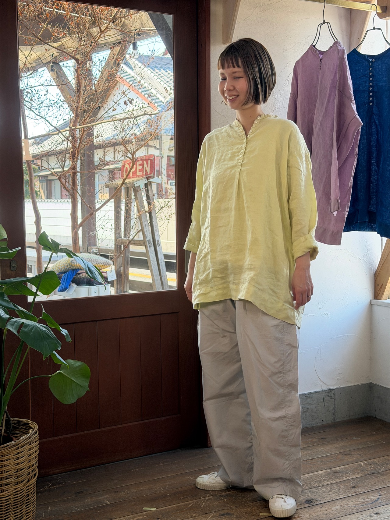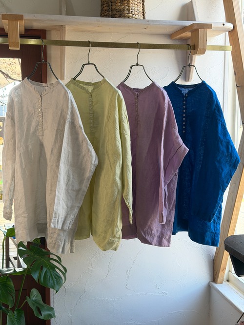 リネン100%日本製品染めの多釦チュニック
