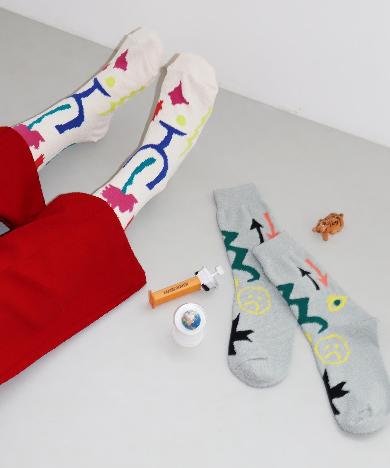 おもちゃ箱みたいに素敵なものがごちゃ混ぜになったHAPPYな柄です。