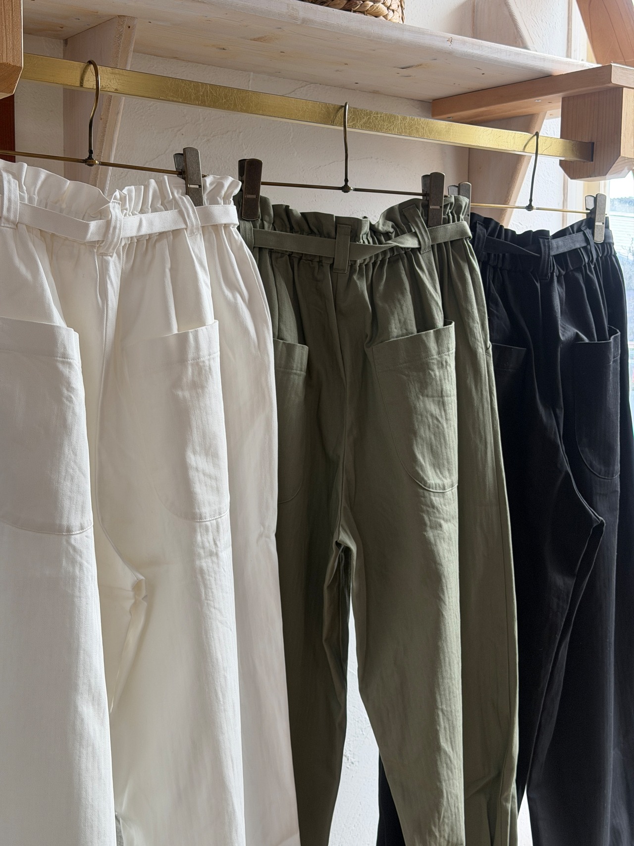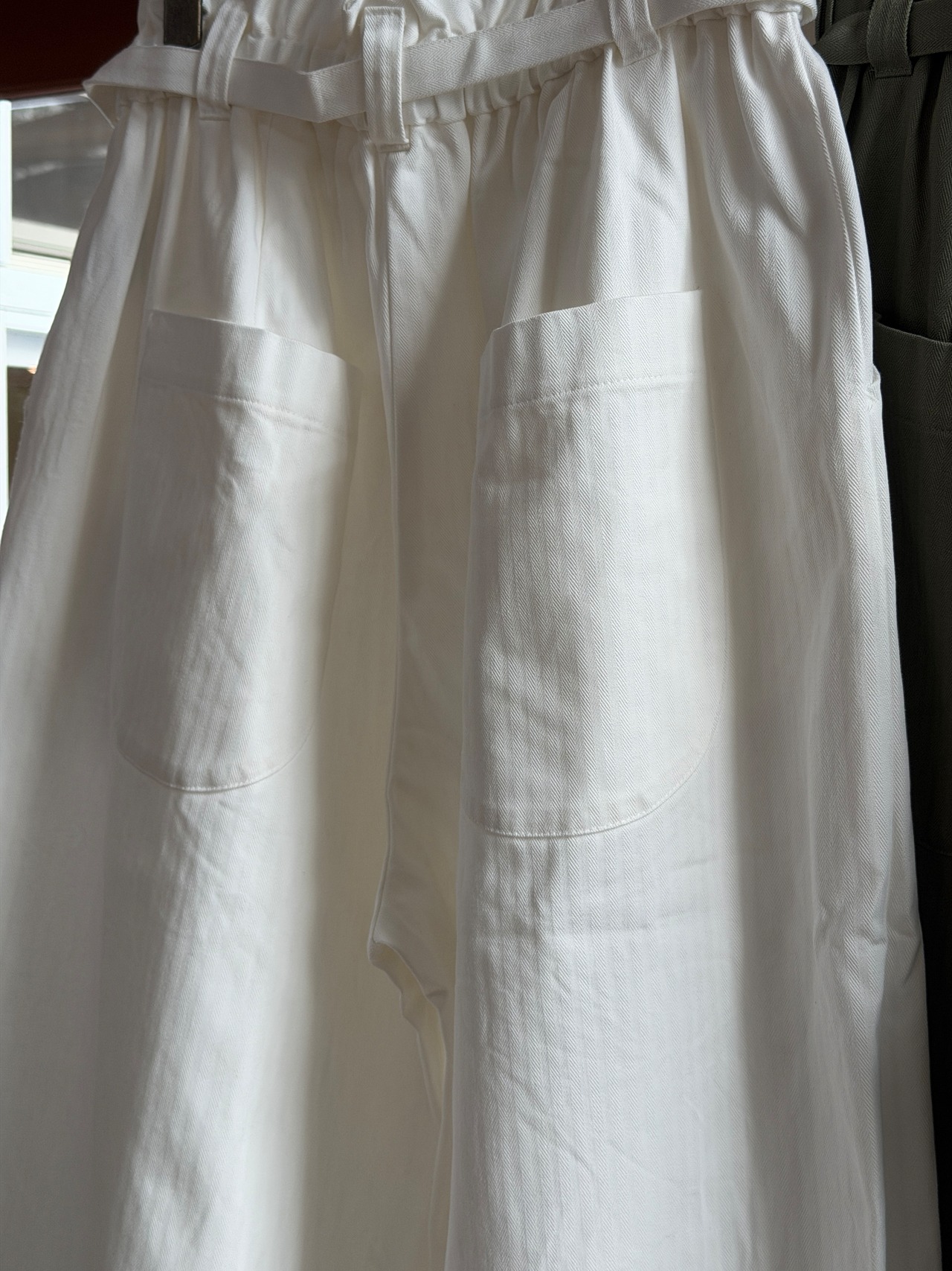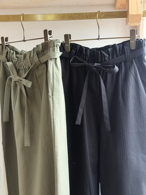 コットンヘリンボーンの共地のウエストベルト付きPTです