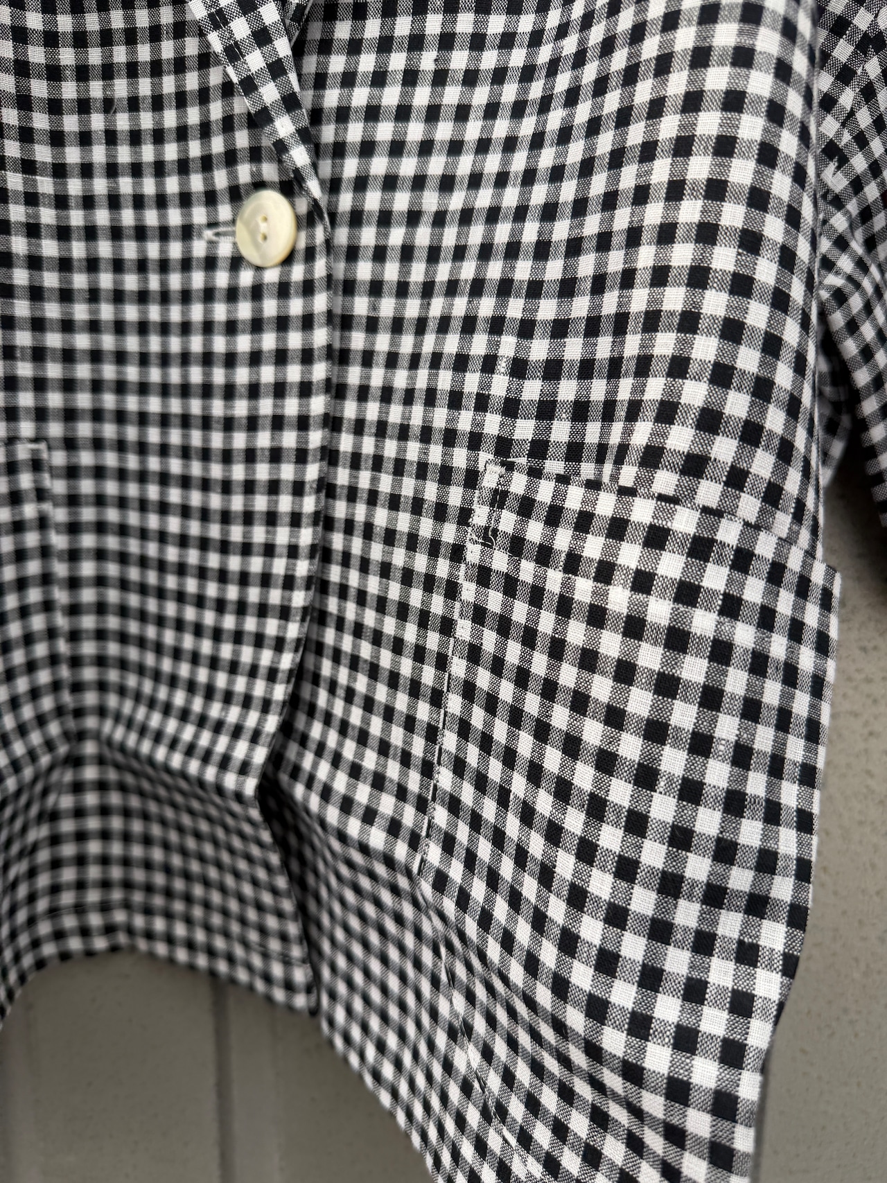 大きめの貝釦がナチュラルな存在感を放ち、パッチポケットで程よいカジュアルさをプラス