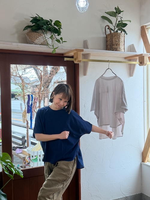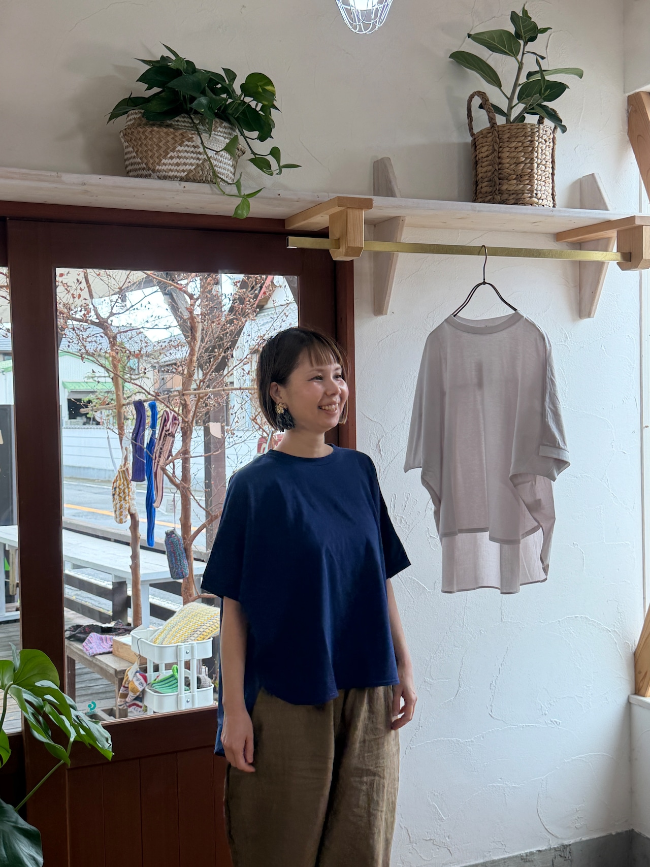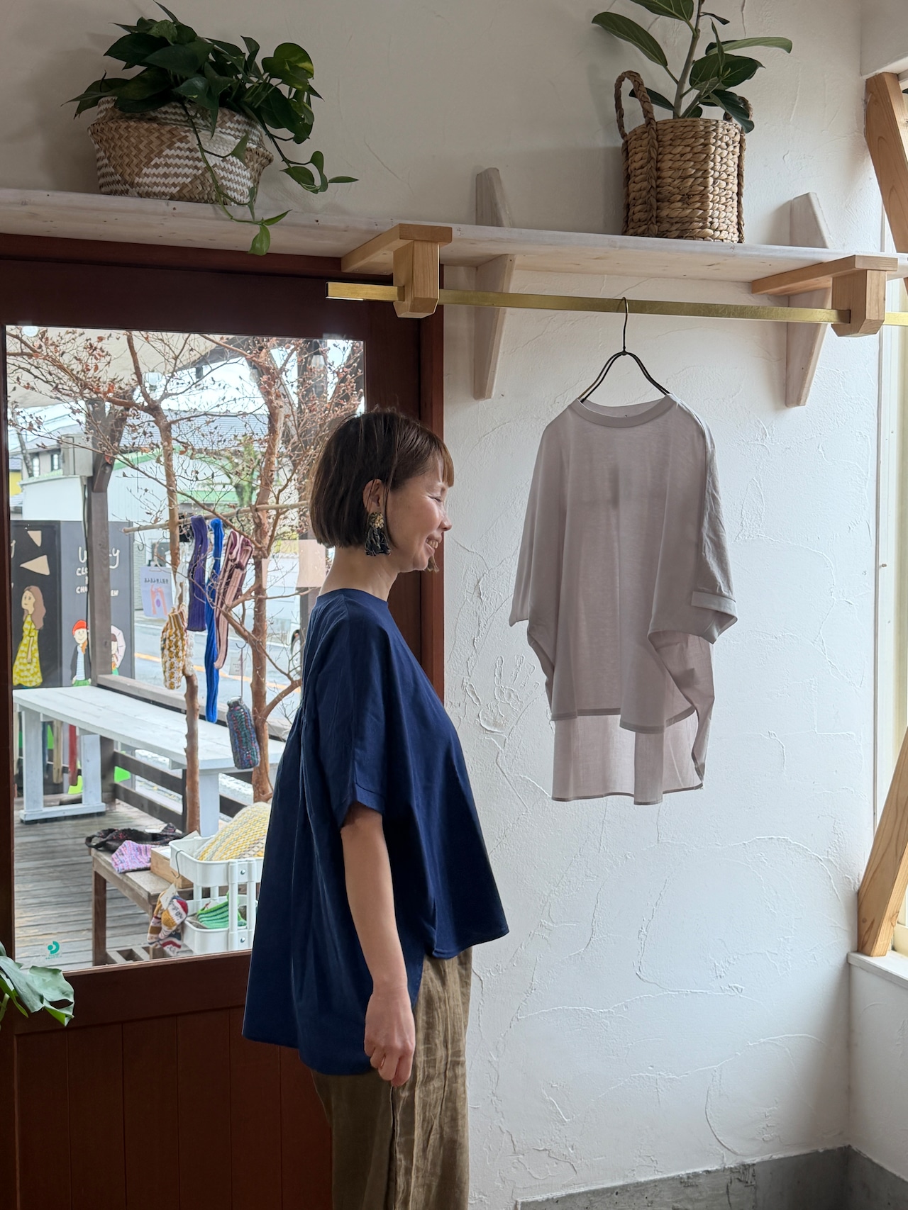 肩から袖にかけてゆったりしたラインがリラックス感を演出し心地よい着用感