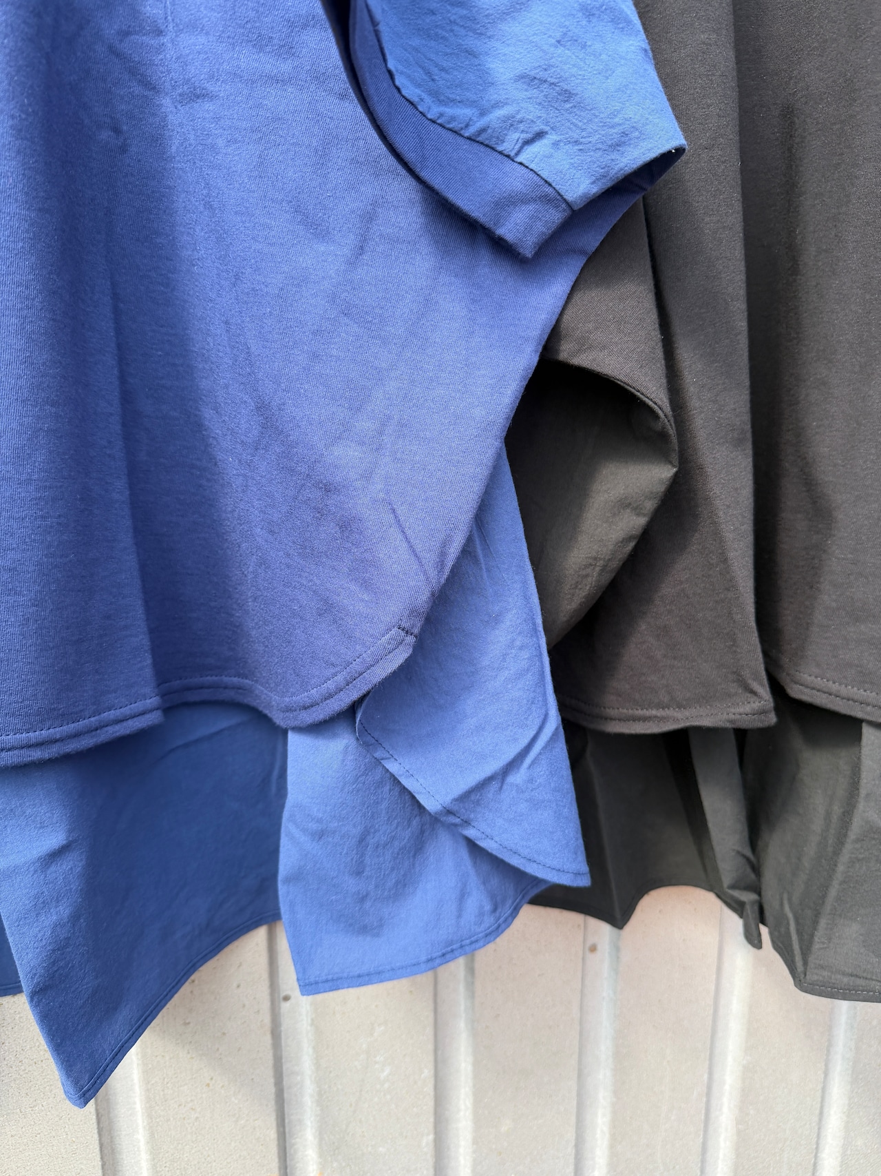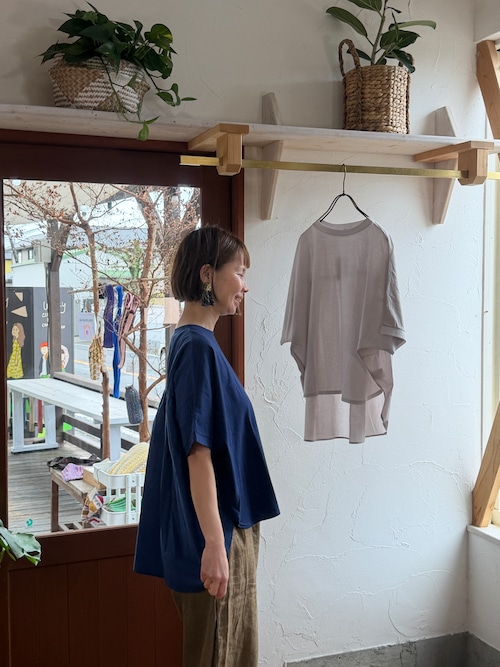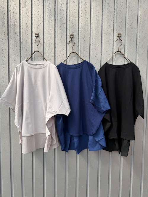 やわらかなナチュラル天竺とふんわり仕上げたローン素材を前と後ろで切り替えたプルオーバー