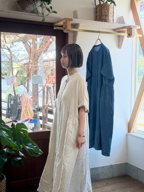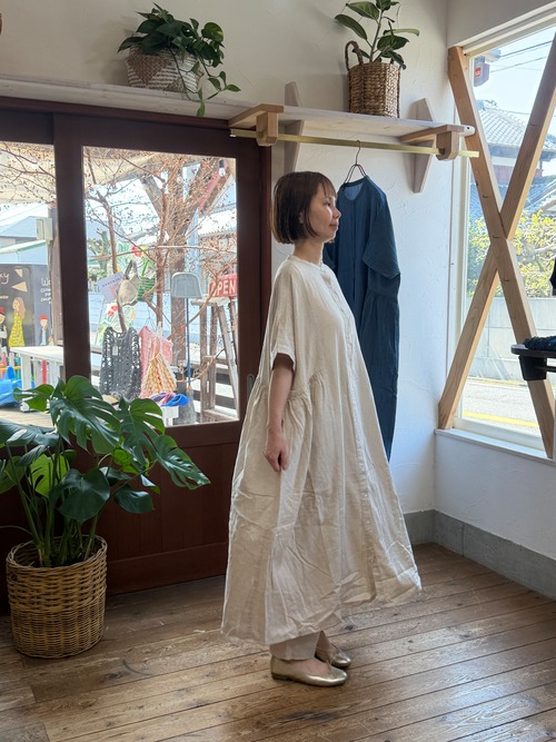 4.5oz綿麻甘撚りデニム/サイドギャザーワンピース/ista-ire’26SS/2601-6630